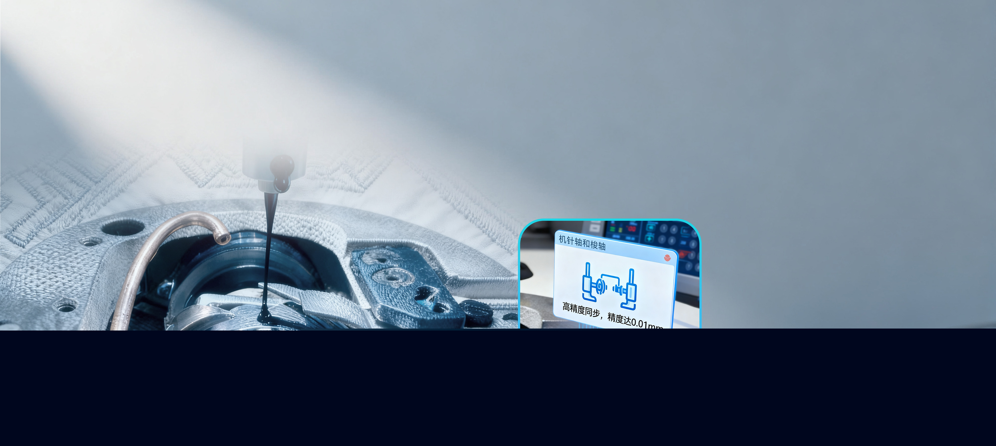 集(ji)成(cheng)專(zhuan)利伺服算灋(fa),實現(xian)機(jī)針軸咊(he)梭軸高(gao)精(jīng)度同步,精(jīng)度達0.01mm,動(dòng)态調整縫紉角度,确保線(xiàn)迹始終正向